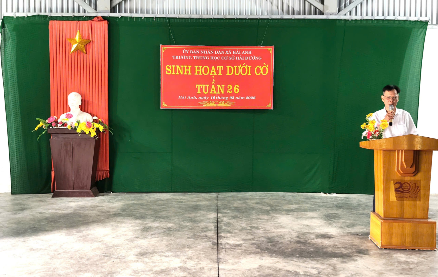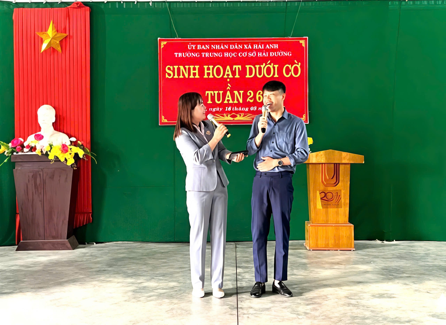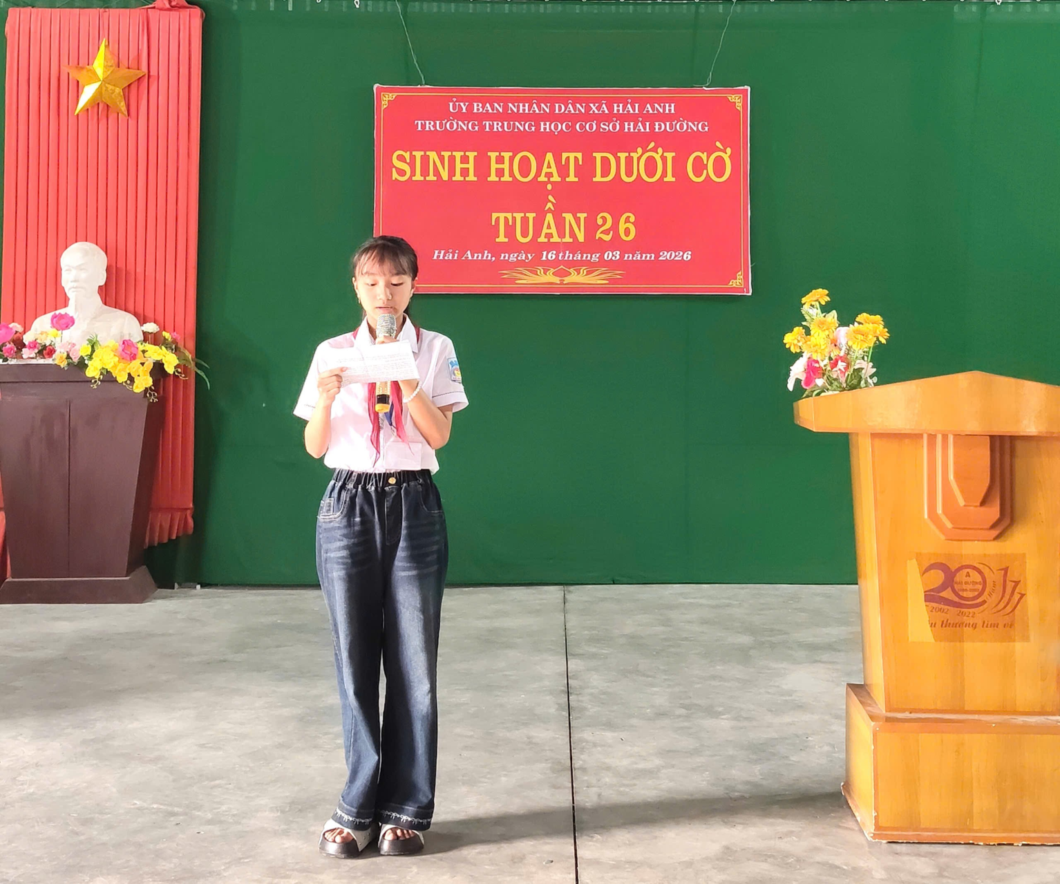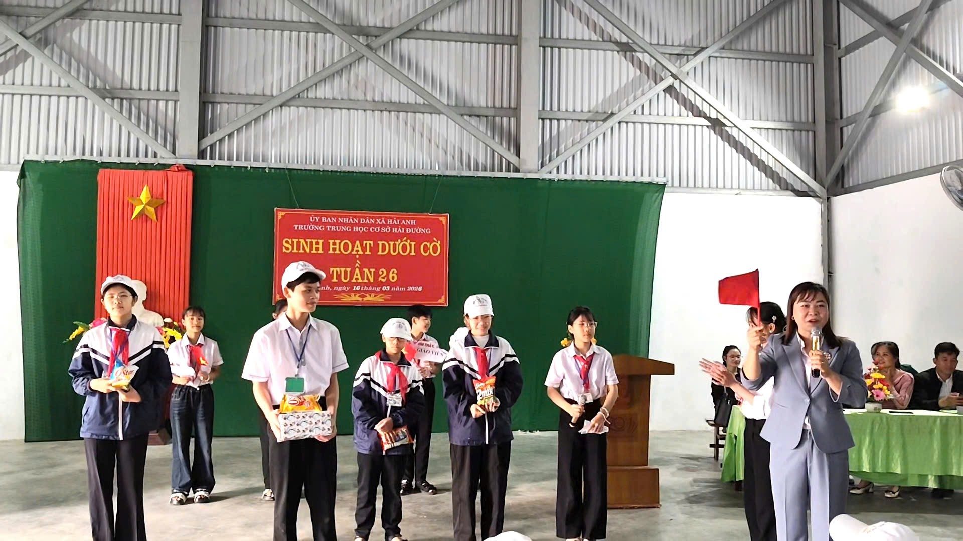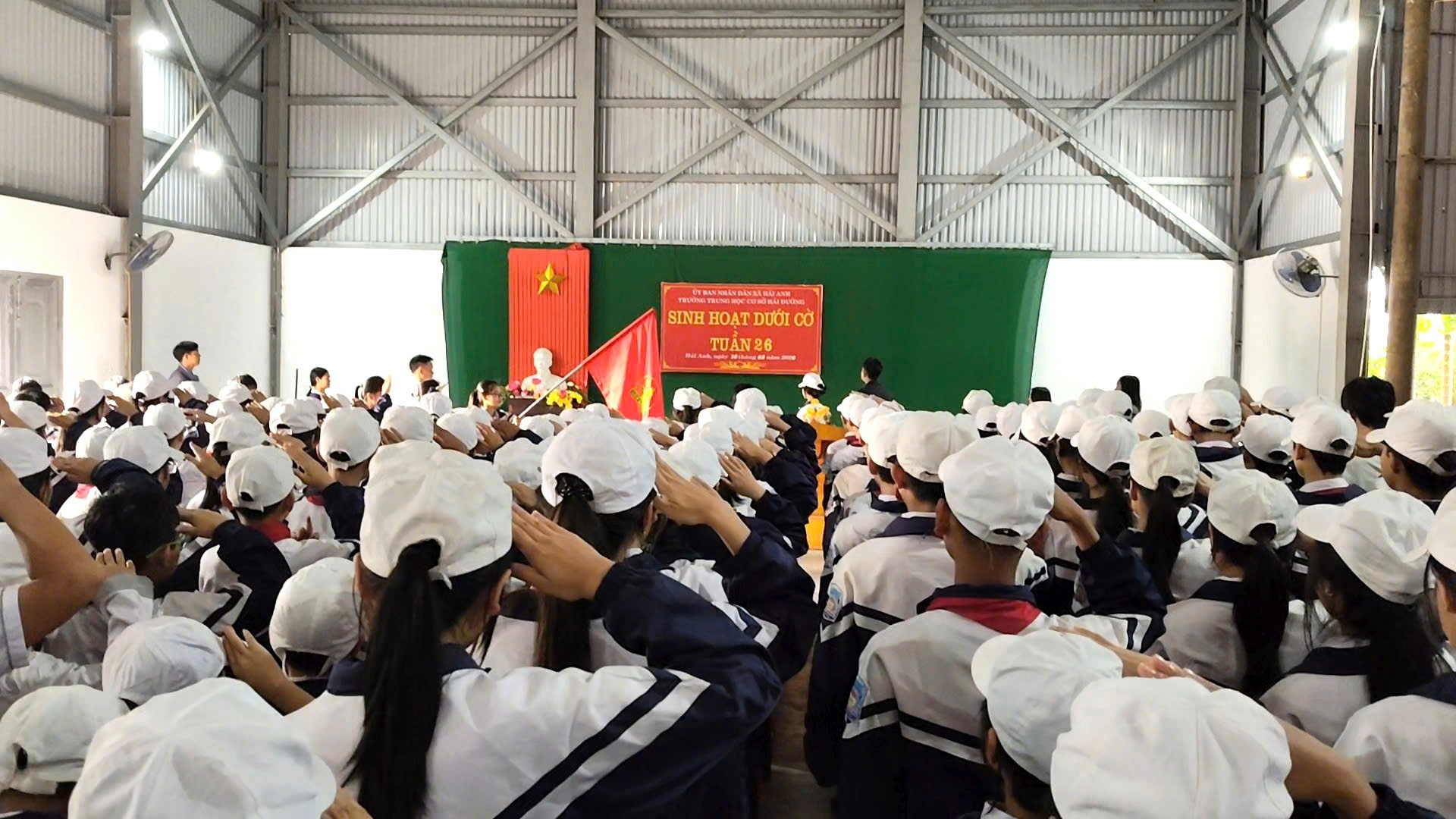 Sáng thứ Hai đầu tuần, trong không khí trang nghiêm và phấn khởi, thầy và trò trường THCS Hải Đường đã tổ chức buổi sinh hoạt dưới cờ với nhiều nội dung ý nghĩa. Trường THCS Hải Đường gồm hai khu: Khu A và Khu B. Cả hai khu đều tổ chức sinh hoạt dưới cờ rất sôi nổi. Chương trình không chỉ là dịp để nhìn lại kết quả học tập, rèn luyện của tuần qua, mang đến một hoạt động truyền thông thú vị về chủ đề “Các ngành nghề trong xã hội”, giúp học sinh hiểu hơn về giá trị của lao động và nuôi dưỡng ước mơ nghề nghiệp cho tương lai mà còn để chúc mừng sự thành công tốt đẹp sau ngày Bầu cử đại biểu Quốc hội khóa XVI và Đại biểu hội đồng nhân dân các cấp nhiệm kỳ 2026-2031. Tại khu A, thầy và trò đã tổ chức buổi sinh hoạt đầy hứng khởi, mang lại niềm vui, gieo mầm ước mơ nghề nghiệp cho học sinh, tạo động lực cho học sinh quyết tâm phấn đấu.