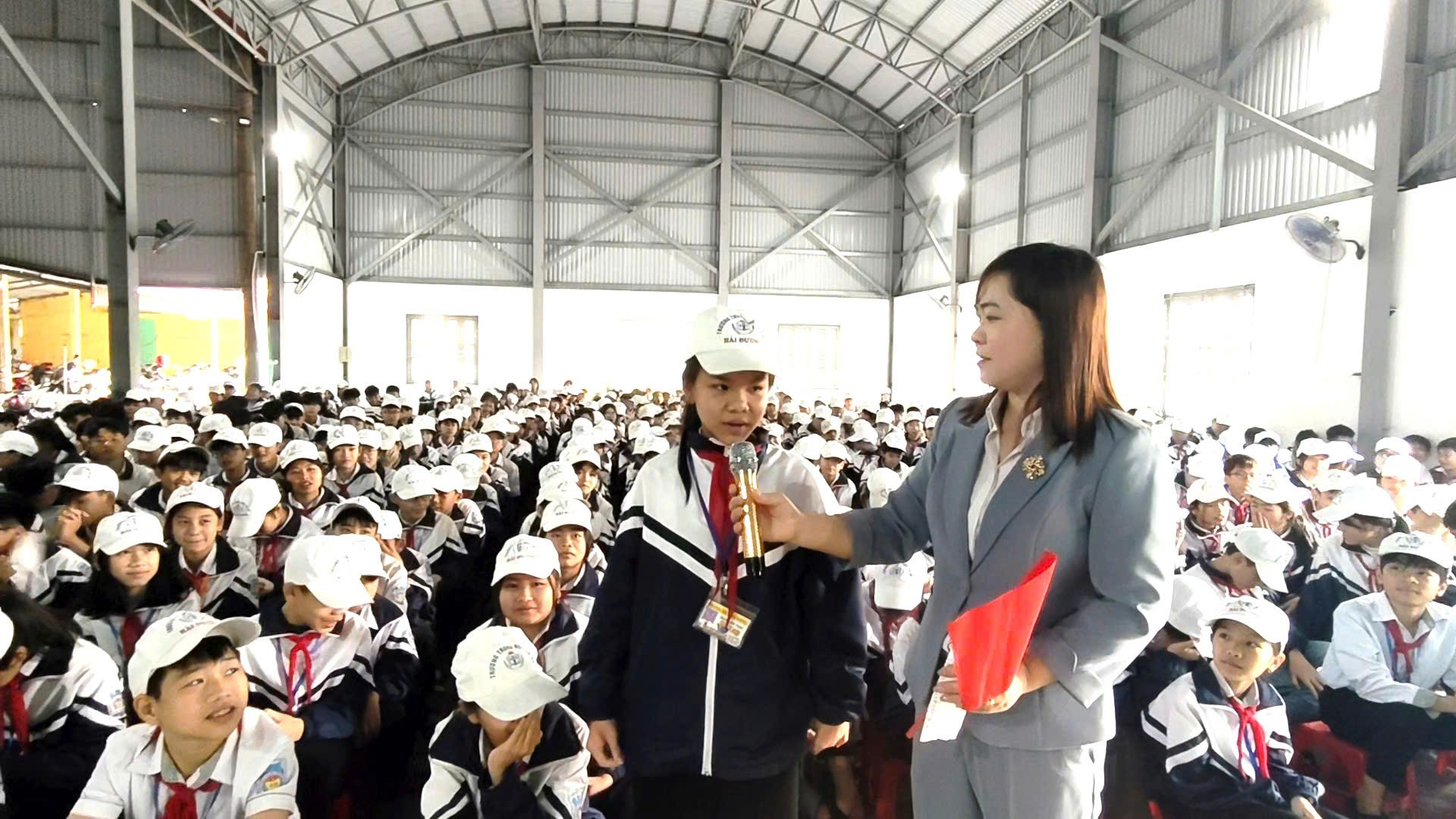 Mở đầu phần sinh hoạt, bạn Trần Thị Huyền Trang đã giới thiệu chủ đề của chương trình, đồng thời đảm nhận vai trò dẫn dắt xuyên suốt các hoạt động. Với giọng nói tự tin và phong thái tự nhiên, bạn đã giúp chương trình diễn ra mạch lạc và thu hút sự chú ý của khán giả. Bạn nhấn mạnh rằng trong xã hội, mỗi ngành nghề đều có một vai trò riêng và tất cả đều góp phần xây dựng cuộc sống ngày càng tốt đẹp hơn. Qua chương trình này, học sinh sẽ hiểu hơn về giá trị của các nghề nghiệp và có thêm động lực để nuôi dưỡng ước mơ cho tương lai.