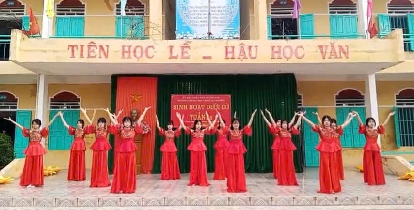 Tại sân trường khu B, các tiết mục văn nghệ cũng rất đặc sắc để chúc mừng sự thành công tốt đẹp sau ngày Bầu cử đại biểu Quốc hội khóa XVI và Đại biểu hội đồng nhân dân các cấp nhiệm kỳ 2026-2031.