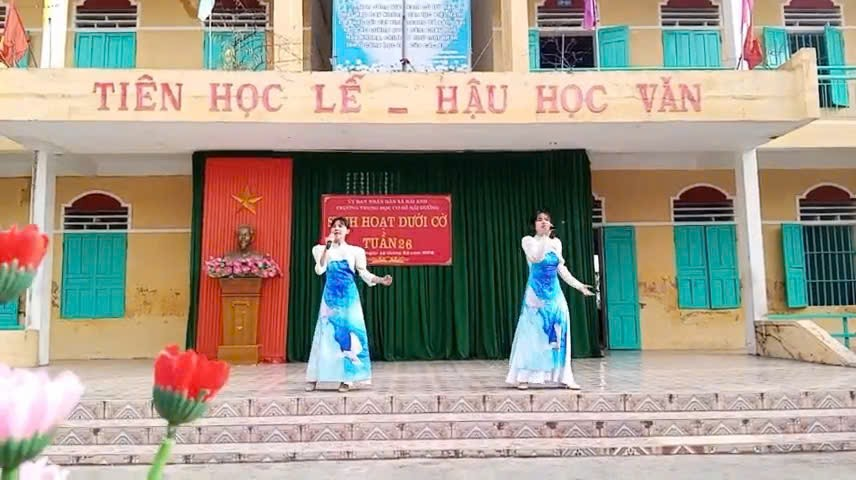 Bạn Trần Khánh Nhi đã mang đến ca khúc “Buông Trăng” do Phương Mỹ Chi sáng tác. Với giọng hát trong trẻo và cảm xúc, tiết mục đã nhận được sự cổ vũ nhiệt tình của các bạn học sinh.Tiếp đó, thầy Vương Văn Phú và cô Trần Thị Thanh Huyền đã cùng thể hiện ca khúc “Hành khúc ngày và đêm.” – Sáng tác Phan Huỳnh Điểu. Giọng hát truyền cảm của hai thầy cô đã mang lại một không khí trang trọng, hào hùng và nhận được những tràng pháo tay nồng nhiệt từ toàn thể học sinh.